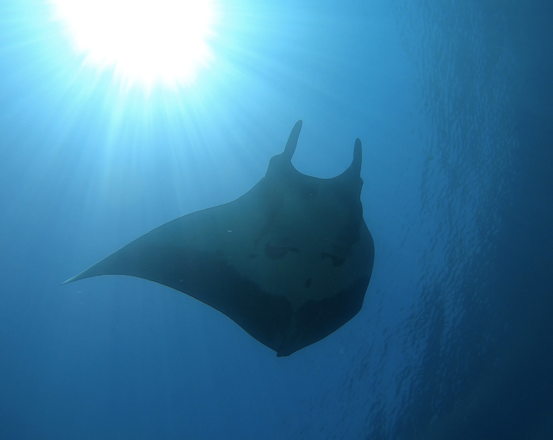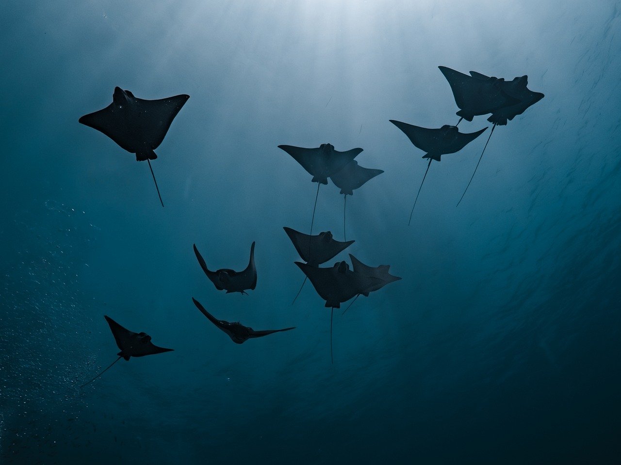 Species such as devil rays and sharks. These species usually live far from the coast, in deep waters.