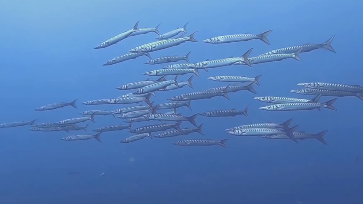 Schools of fish such as grunts, seabream, salema, bogue, amberjack, and needlefish are commonly seen moving across these volcanic seabeds.